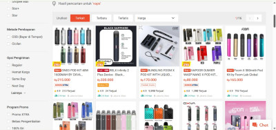 Sedangkan untuk Tokopedia agak beda. Di aplikasi iOS, kata kunci vape masih bisa muncul. Tapi kalau kalian pengguna Android, caranya sama kayak Shopee, harus lewat website di laptop atau Chrome browser.