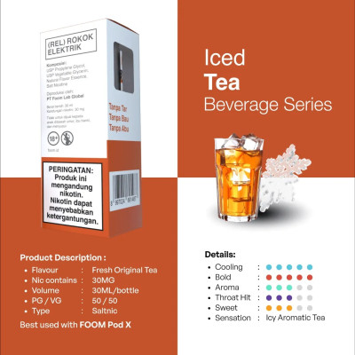 Liquid Foom Iced Tea ini best seller banget karena rasanya yang netral mirip banget kayak kamu lagi minum segelas es teh manis setelah makan, jadi vibes rasanya emang cocok dinikmati kapan aja dan masuk di aktivitas apa aja.