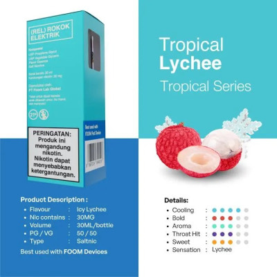 Liquid Foom salt nic yang tergabung dalam Tropical Series ini punya rasa yang nyegerin dan istimewa, dulu namanya Maldives namun sekarang di rebranding lagi oleh Foom menjadi Foom Tropical Lychee.
